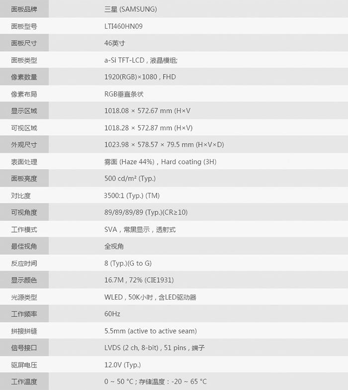 液晶屏尺寸     46寸TFT真彩液晶屏