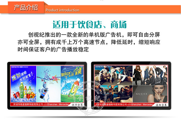 6、支持背景疊加從而廣告節(jié)界面更加美觀/以上為創(chuàng)視紀廣告機行業(yè)獨有功能,豎屏機不需為重新制作豎式節(jié)目而煩,廣告機功能最大化,十分人性化,便捷