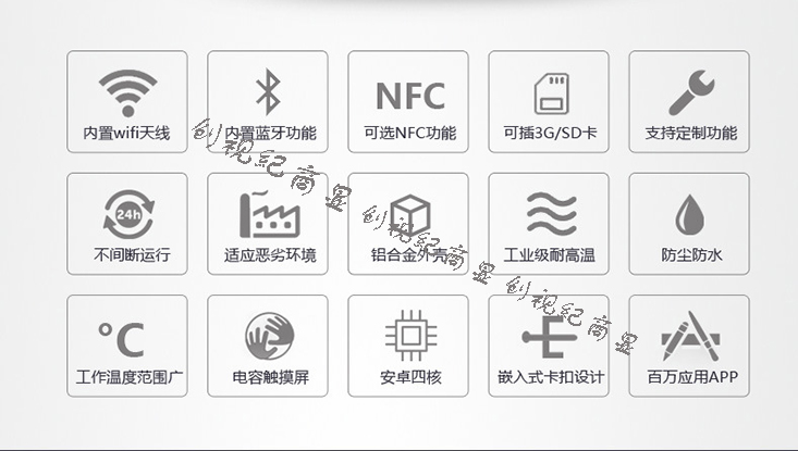 創(chuàng)視紀(jì)工業(yè)平板電腦一體機(jī)是專供工業(yè)界使用的工業(yè)控制計(jì)算機(jī),其基本性能及相容性與商用電腦相差無幾,但創(chuàng)視紀(jì)工業(yè)平板電腦一體機(jī)更多的是注重在不同環(huán)境下的穩(wěn)定性, 如飲料生產(chǎn)線控制、汽車生產(chǎn)線控制等等,在惡劣的環(huán)境下要求穩(wěn)定,如防塵、防水、防靜電、防潮、耐高溫多插槽和易于擴(kuò)充等特點(diǎn)。創(chuàng)視紀(jì)工業(yè)觸控平板電腦一體機(jī)前面板大多采用鋁鎂合金壓鑄成型,前面板達(dá)到NEMA IP65防護(hù)等級(jí)。堅(jiān)固結(jié)實(shí),持久耐用,而且重量比較輕。與一般商用電腦不同,創(chuàng)視紀(jì)工業(yè)平板電腦一體機(jī)系列產(chǎn)品是各種工業(yè)控制、交通控制、環(huán)保控制和自動(dòng)化領(lǐng)域中其它各種應(yīng)用的最佳平臺(tái)。