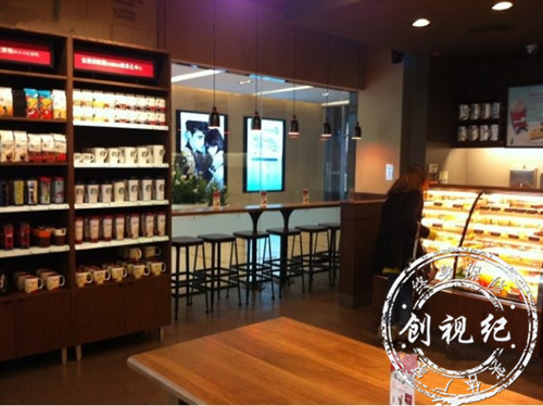 創(chuàng)視紀(jì)廣告機(jī)應(yīng)用在星巴克咖啡的項(xiàng)目實(shí)拍照片: