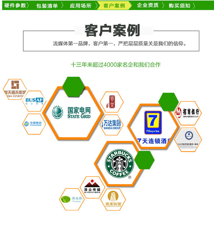 6、分屏功能:可以將圖片+視頻+滾動字幕同時多畫面顯示,這樣獨特的顯示給廣告運營商帶來更多商機,可實現(xiàn)多家媒體的廣告同時播放。