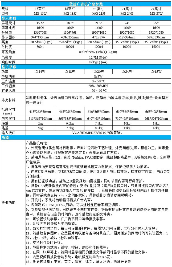 15/18/21/24/27英寸樓宇壁掛廣告機(jī)