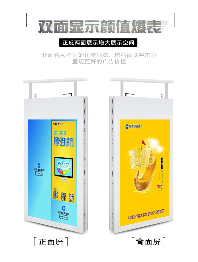 43寸建行櫥窗雙面屏吊裝廣告機(jī)