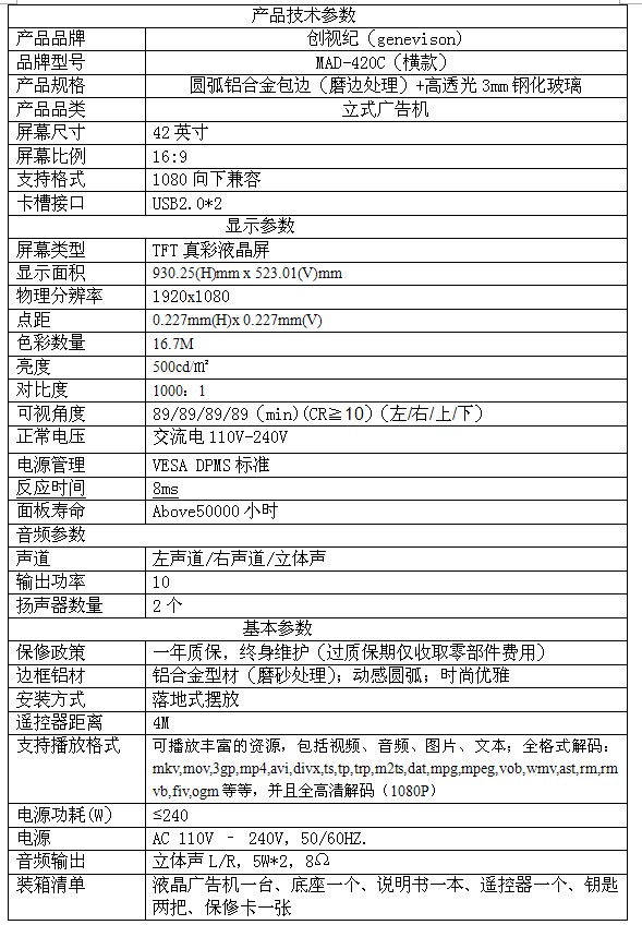 42寸亮度       500cd//㎡