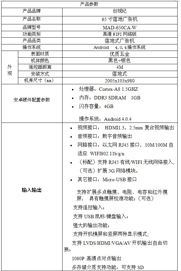 $?:0?c?xntext-indent:0.7200pt; margin-left:-0.7200pt; margin-right:17.9550pt; margin-bottom:0pt; margin-top:0pt; " >2、多國語言:支持中文、英文等絕大多數(shù)國家語言,TTF矢量字庫支持,顯示不失真;3、 定時開關(guān)機(jī):利于節(jié)省能源,并且延長其使用壽命;設(shè)定開關(guān)機(jī)時間后,整個系統(tǒng)在開機(jī)時間段自動啟動。在關(guān)機(jī)時間段自動停止運(yùn)行進(jìn)入關(guān)機(jī)狀態(tài)。關(guān)機(jī)狀態(tài)下,設(shè)備不響應(yīng)外部操作,不輸出任何音視頻信號;
