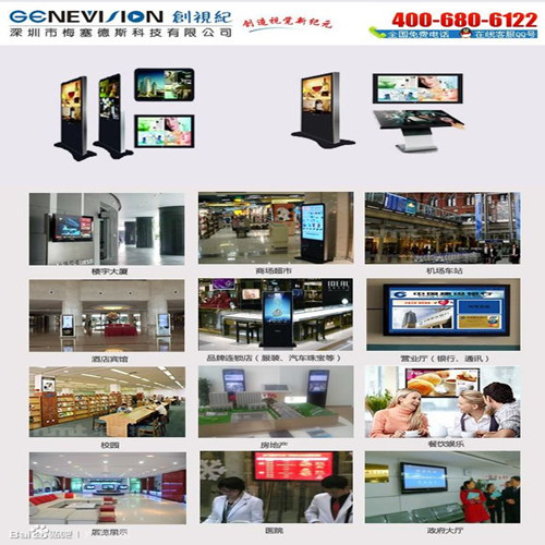 現(xiàn)在廣告機(jī)在公交車、長(zhǎng)途汽車、出租車、酒店、飯店、銀行、學(xué)校、購(gòu)物中心、汽車站、火車站、地鐵站、地鐵列車、高速列車、醫(yī)院、專賣店、售樓中心、展覽館、體育場(chǎng)、博物館等公共領(lǐng)域都隨處可見,為人們的生活更添一份色彩!
