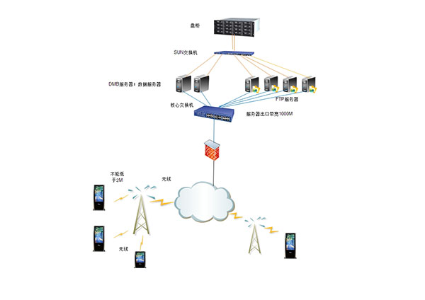 服務(wù)器群架設(shè)在總部網(wǎng)絡(luò)管理中心,采用先進(jìn)的B/S管理架構(gòu),對各種信息播放媒介進(jìn)行管理、控制、監(jiān)控及下發(fā)各種多媒體信息。