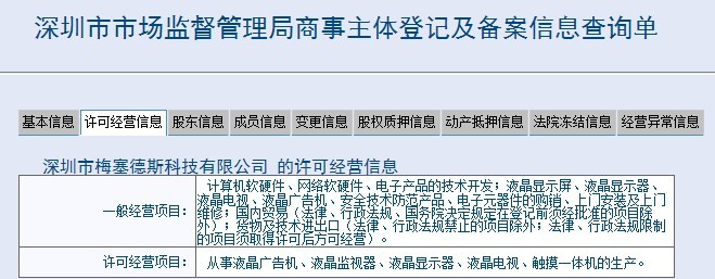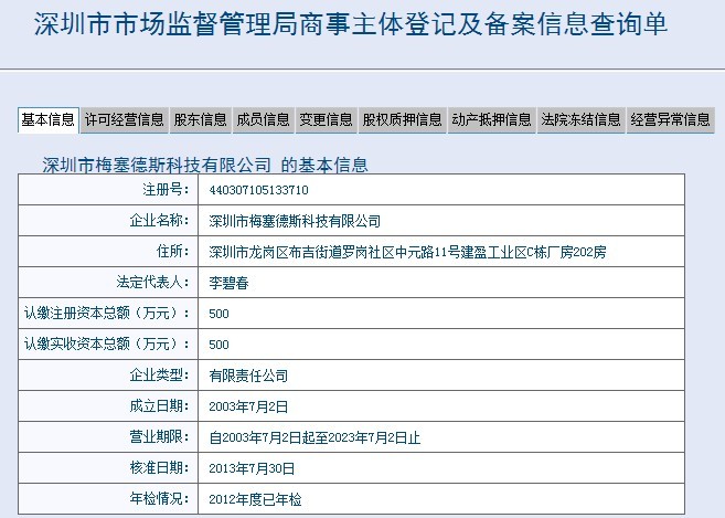 以上資訊已深圳市市場(chǎng)監(jiān)督局網(wǎng)站提供:http://app01.szaic.gov.cn/aiceqmis.webui/GeneralSearch.aspx