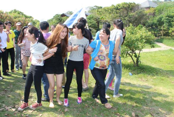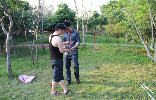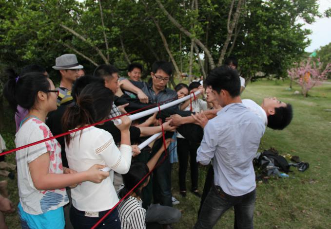 李總親自在準(zhǔn)備游戲道具,穿越火線規(guī)則,將隊(duì)員從用紅線圈成的逃生圈穿過(guò),人的身體其任何衣物不許碰到線,若碰到線,則過(guò)去的人員全部返回重新來(lái)過(guò)。