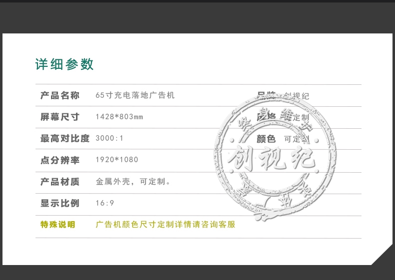 液晶屏尺寸       65寸 TFT 液晶顯示屏