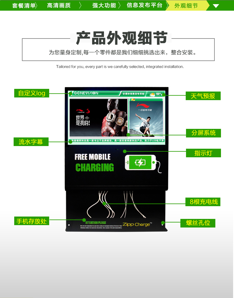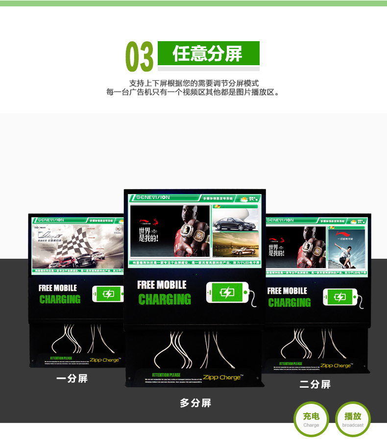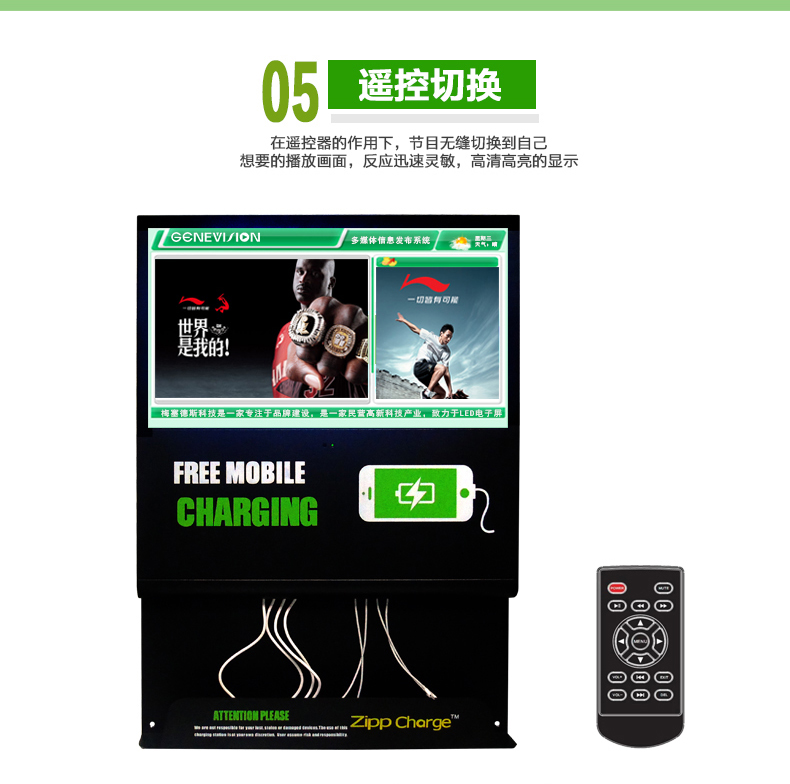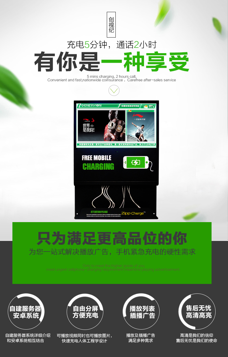 創(chuàng)視紀(jì)壁掛式手機(jī)充電廣告機(jī)火車站手機(jī)加油站